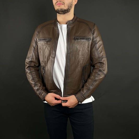 Veste Cuir Véritable Marron