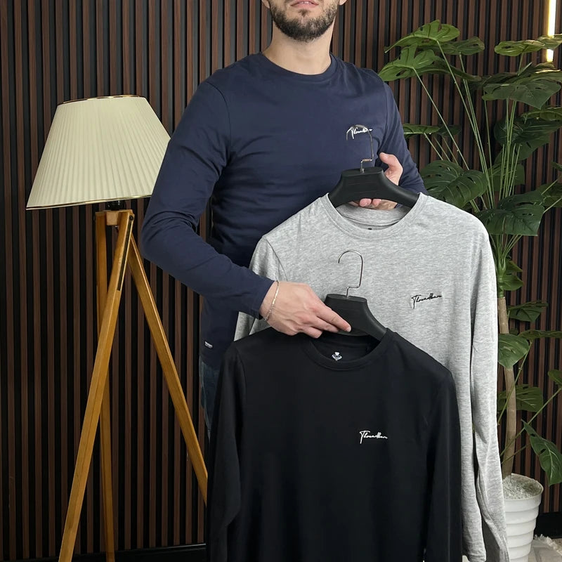 مجموعة من 3 من قمصان الرجالية ذات الأكمام الطويلة والياقة الدائرية توفر هذه المجموعة المكونة من 3 قمصان ذات أكمام طويلة أسلوبًا رائعًا بسعر رائع؛ فهي تتمتع بملمس مريح للغاية ووزن مثالي لأشهر الشتاء؛ يتميز كل طراز بجزء علوي سادة بأكمام طويلة مع شعار Threadbare مطرز، وهي تبدو رائعة مع بنطلونات الشينو أو الجينز لإطلالة أنيقة غير رسمية.