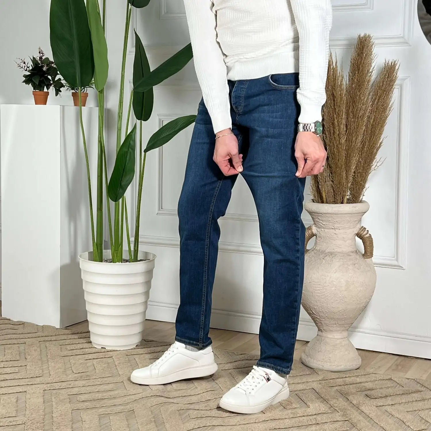 Ce jean allie élégance moderne et confort durable, idéal aussi bien pour une journée décontractée que pour une sortie stylée.,