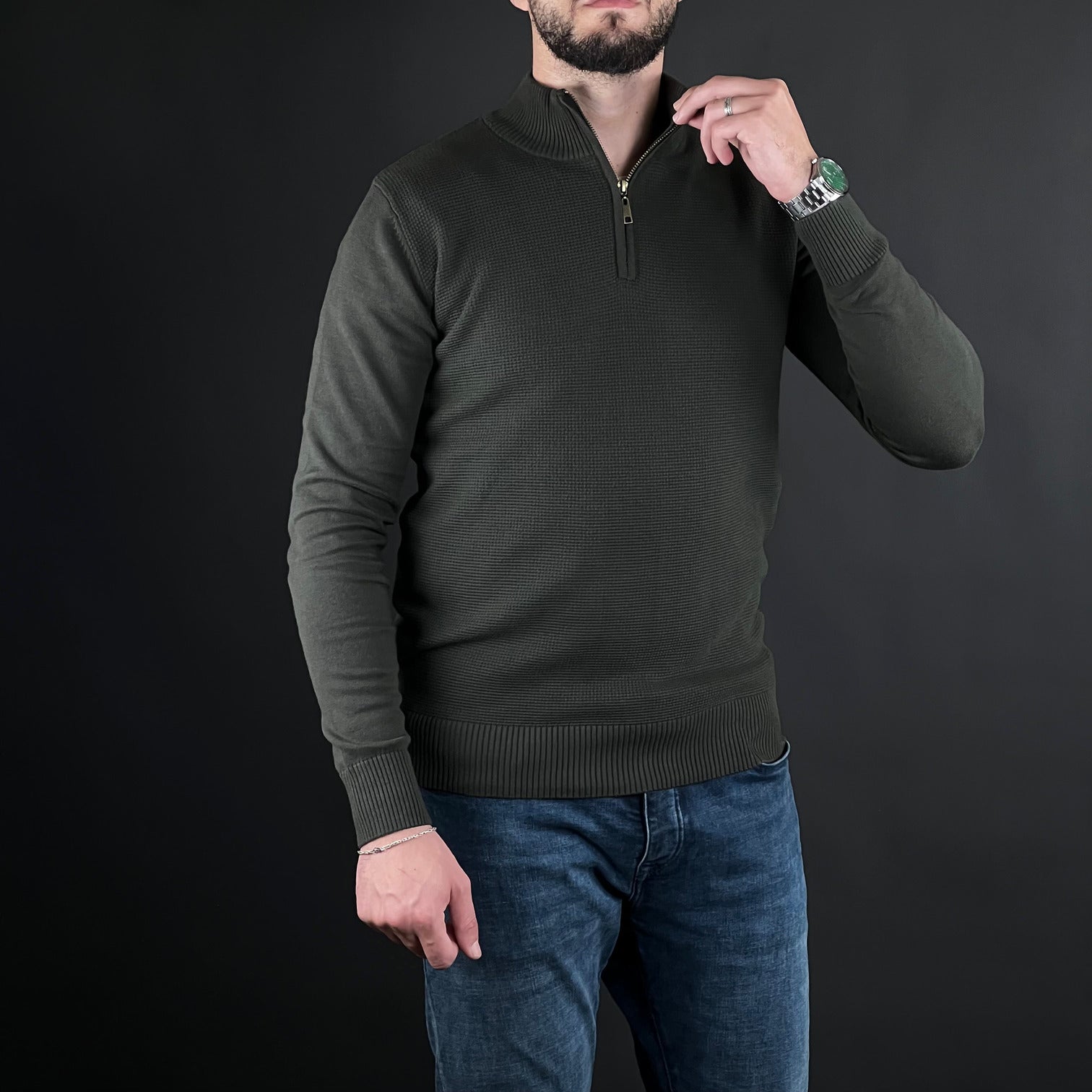 احصل على إطلالة عصرية وبسيطة مع كنزة رجالية برقبة مرتفعة وسحاب نصفي، مثالية للأيام الباردة وللاستعمال اليومي. مصنوعة من نسيج مريح وناعم، تمنحك دفئاً ممتازاً مع إحساس خفيف ومريح على البشرة.
